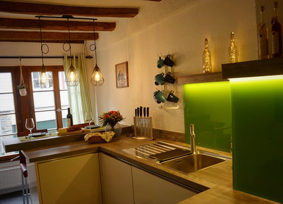 Unsere Küche ist mit Miele-Geräten ausgestattet.
